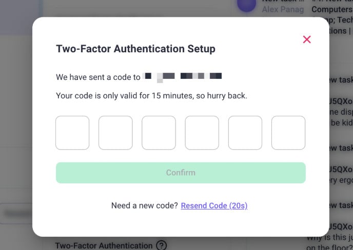 - Click Confirm to finalize the 2FA setup.