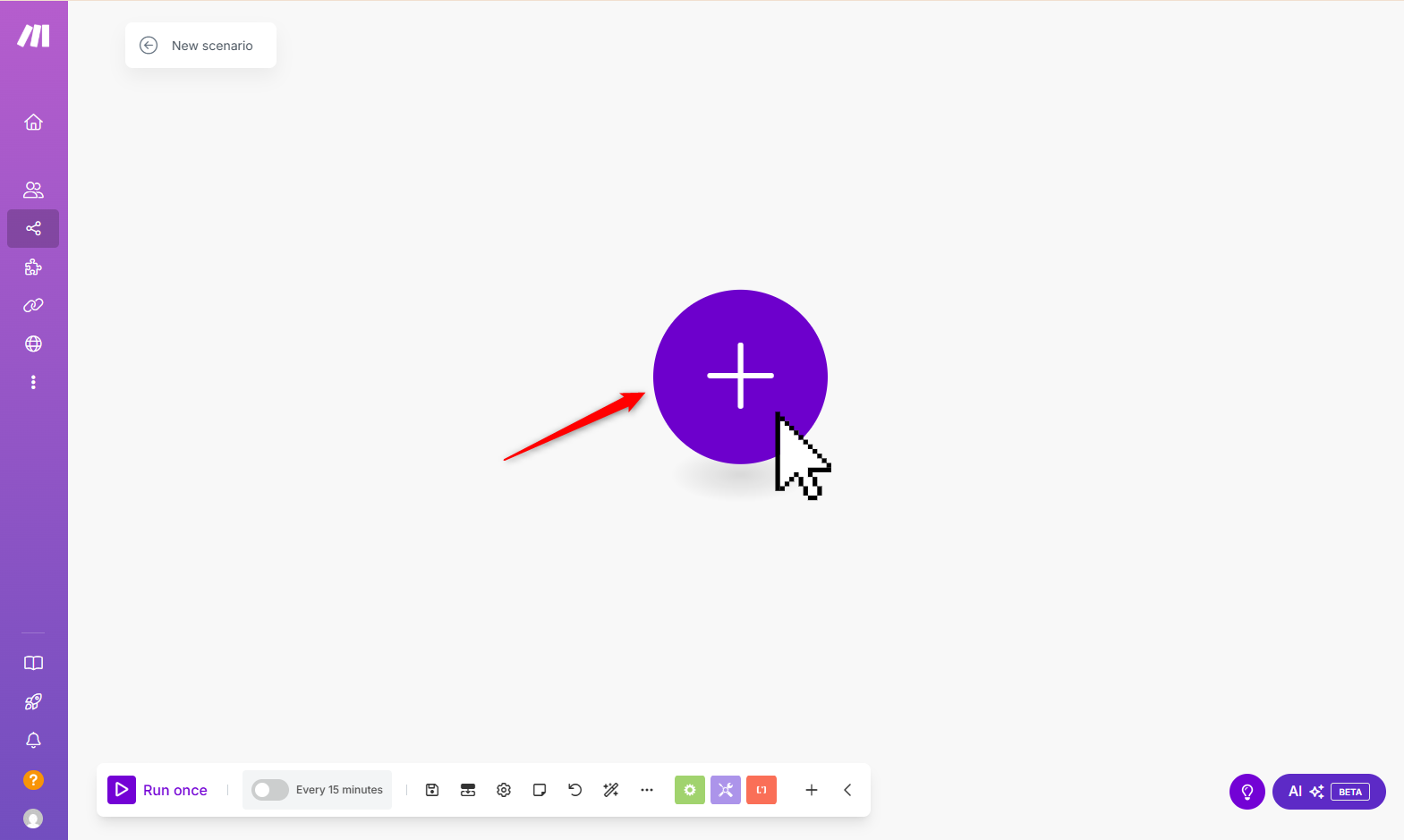 - Start a new Scenario and click the + icon to add a module.