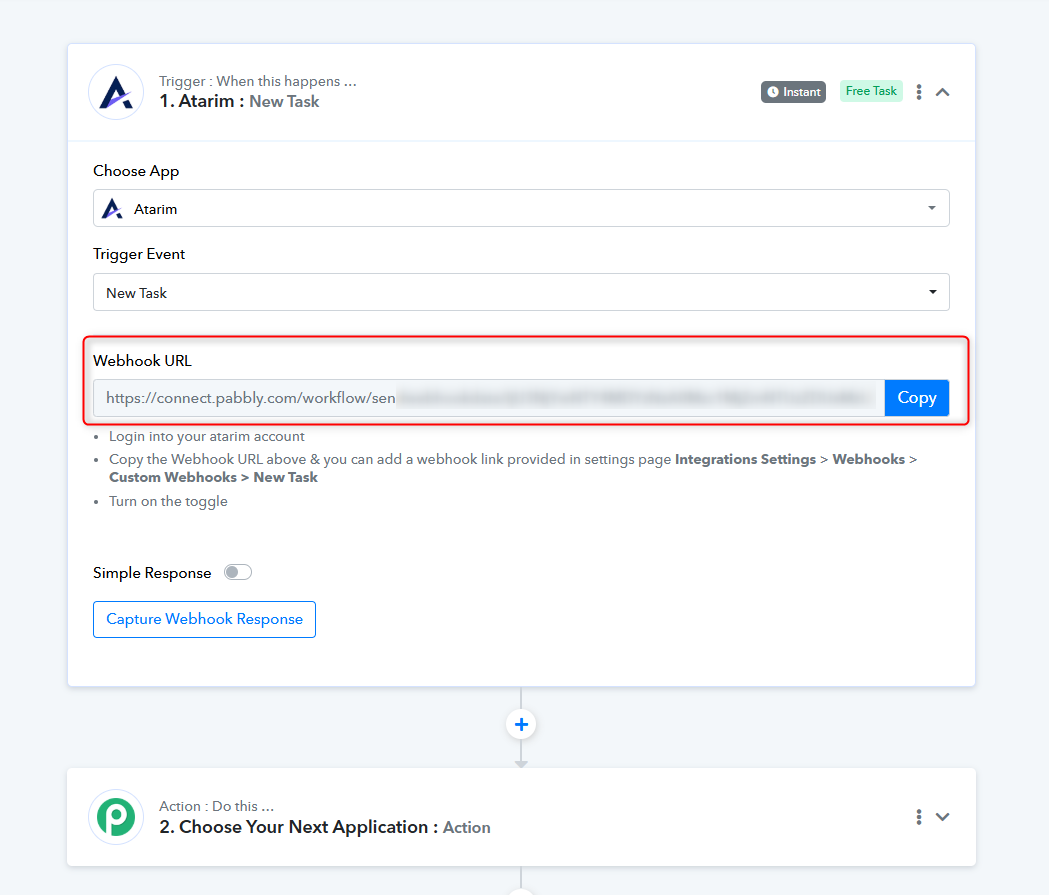 - Pabbly will now generate a Webhook URL.