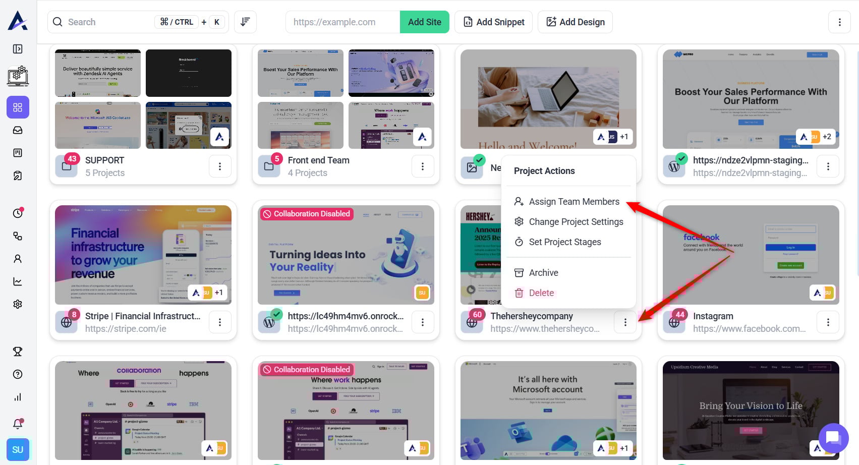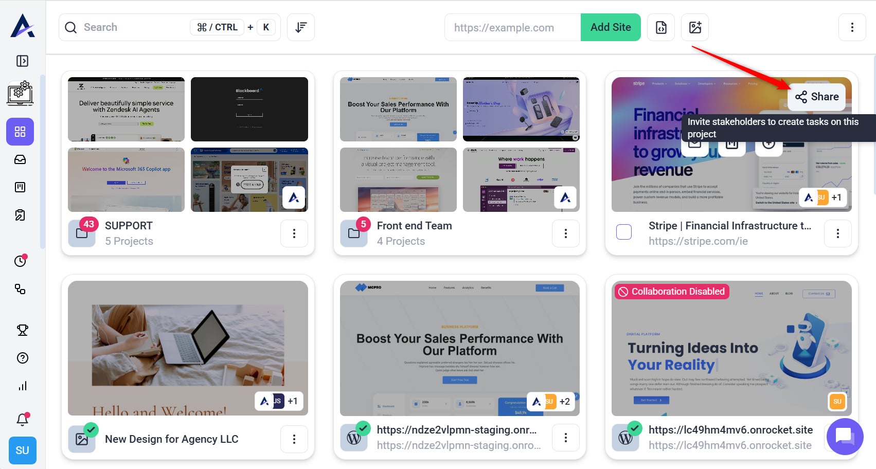 • URL-Based Collaboration: Add a website URL to create a collaborative space for feedback and task management. Ideal for teams working on live or published websites that need real-time reviews.