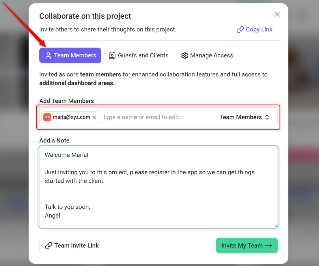 Inviting a Team Member to a Project