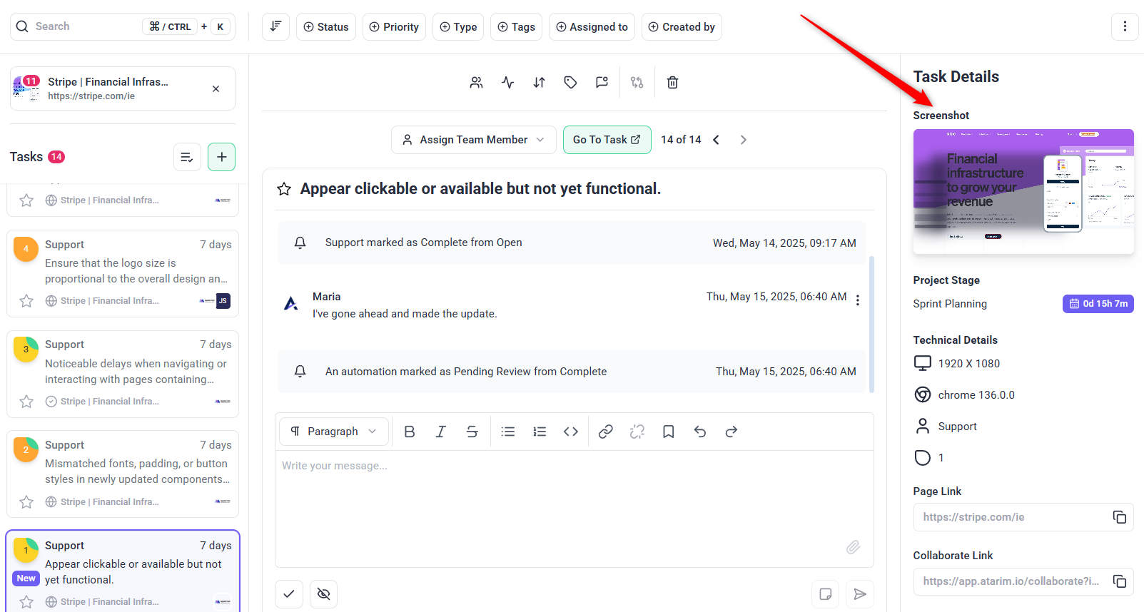 Atarim converts all feedback into manageable tasks, ensuring clarity and organization.