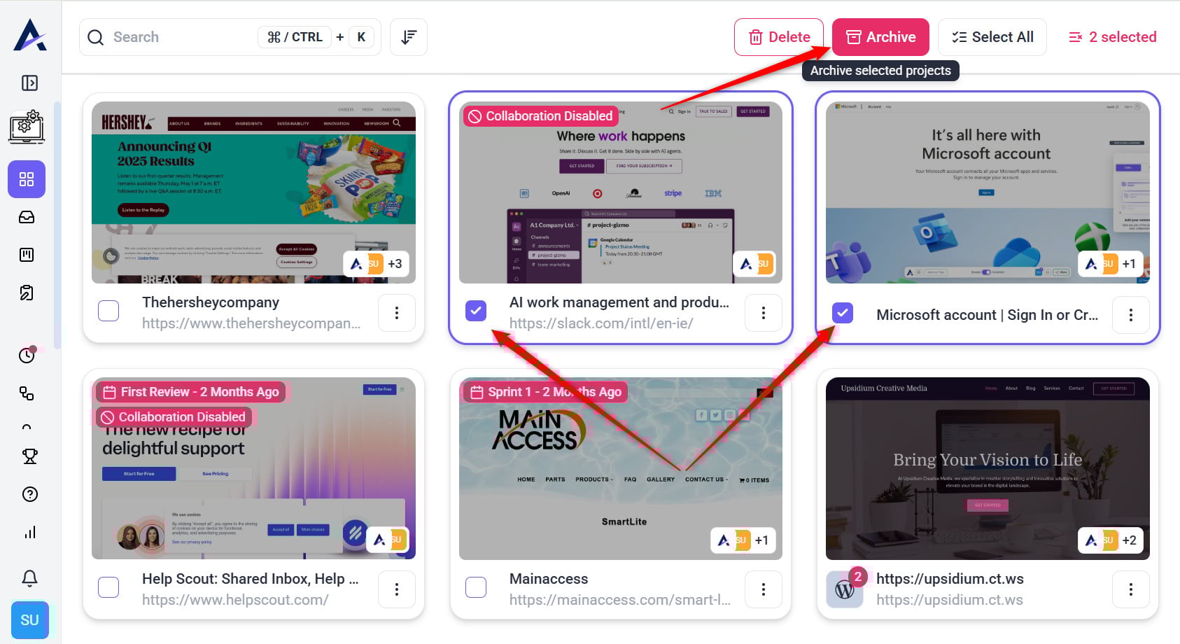 • Use the archive option for inactive projects you may revisit later.