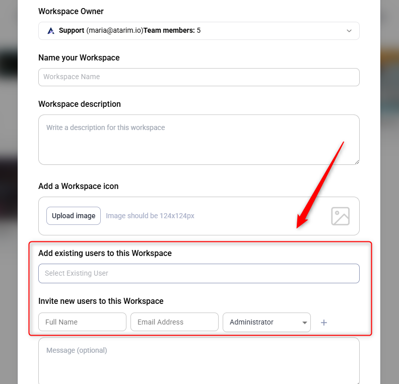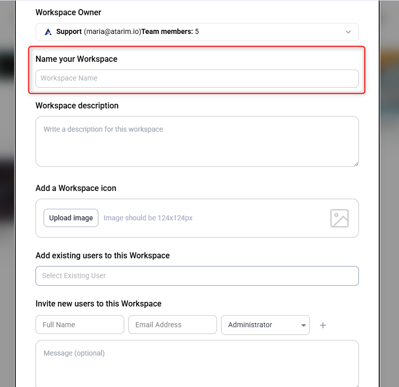 • Name your workspace and assign team members as needed.