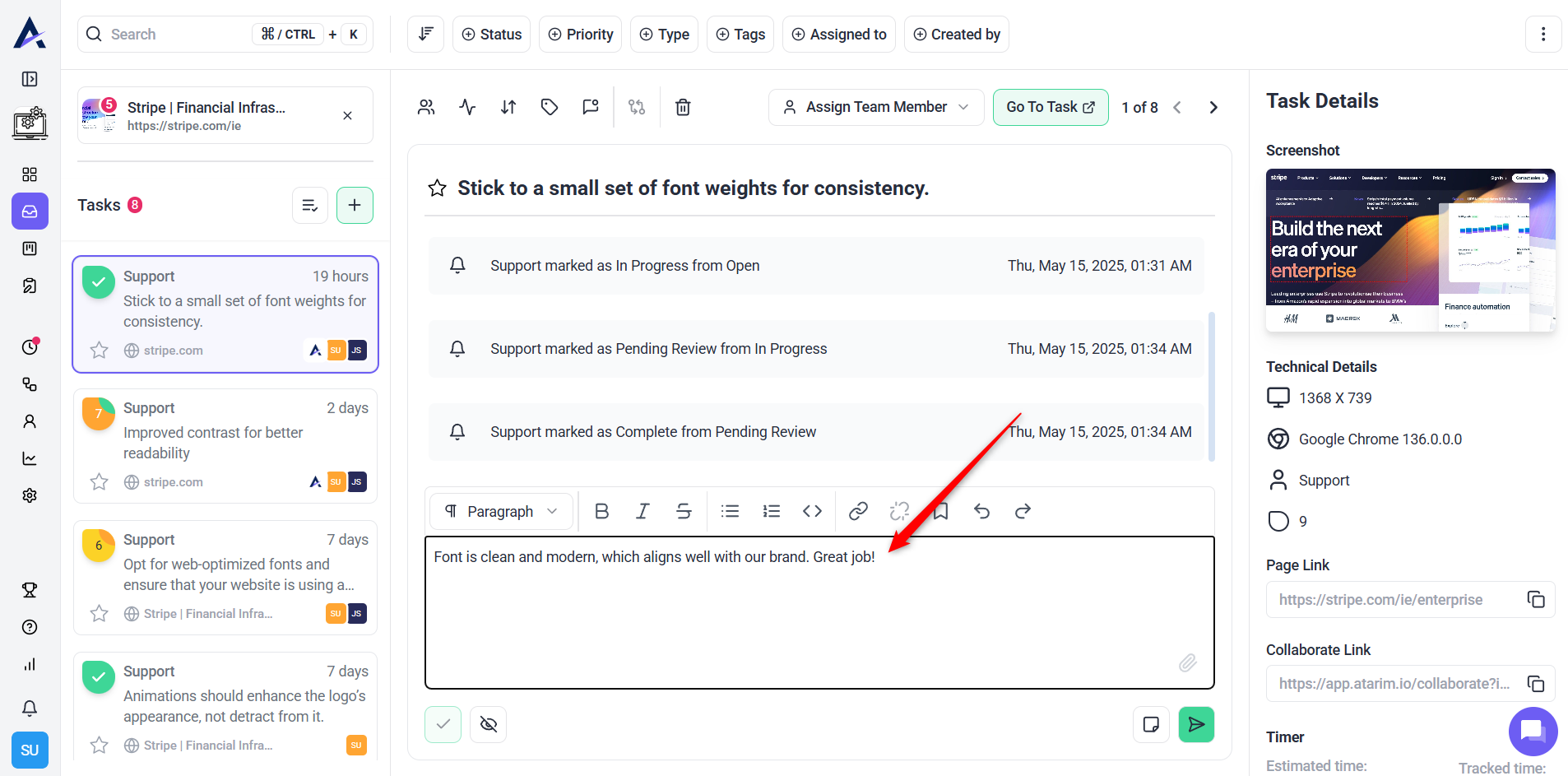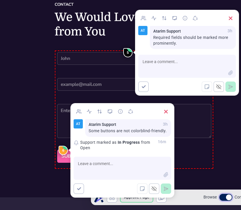 Atarim simplifies managing feedback loops by centralizing comments and approvals within the platform.
